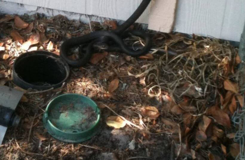 Wow, this snake is definitely hidden in plain sight. One second you’re going to water the yard and the next your on your way to the hospital from a snake bite. We’ll definitely be checking the hose before we touch it now!