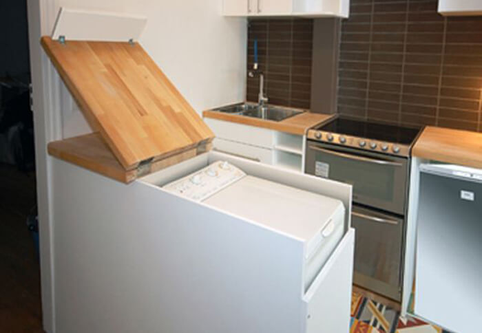 With the recent fad of tiny homes and simple living, this is a great invention. Washing machines and dryers take up so much room, and this solves that very problem. Although it might be a little loud when you’re cooking in the kitchen, it’s better than nothing!